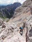 No, drug dan sva se zbudila v jasno jutro in sva šla nazaj gor. Ob poti se splača skočit in posedet na Štruci (2457m), pa naprej na Skuto (2532m). Spust do bivaka pod Skuto in po nemarkirani poti čez Žmavcarje daleč daleč v dolino.