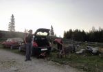Z avtom se kar vleče do pl. Ravne nad Podvolovjekom – od tam pa do pl. Polšak in naprej po občasno precej zaraščeni nemarkirani stezi na Križevnik (1909m) – seveda smo se vmes mal zgubil, se boril z ruševjem, obupal, ampak kmalu našli pravo “pot”…