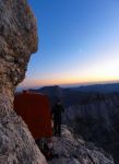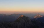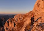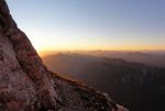 Na ozki polički 2430m visoko sva se skoraj spotaknila ob bivak Suringar, ki je stisnjen pod previsno steno, ob njem je pa samo kakih pol metra prostora za prehod mimo… Nočni izhodi niso priporočljivi! 😉 V bivaku so naju čakala 4 ležišča – in pa 5 Čehov! Hahaha, če do sedaj nismo naleteli na njih po bivakih, je bilo to enkrat pač treba doživet! Smo se malo stisnili pa je nekako šlo… Od bivaka je sicer neomejen pogled proti zahodu vse do Dolomitov tako, da smo imeli krasen sončni zahod, jasno noč z nešteto zvezdami…