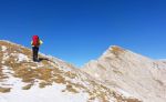 Naslednji dan smo se zbudili v krasno in jasno jutro in ker je bila dolina še večji del dopoldneva v senci, sva šla po grebenu na zahodni strani doline čez Malo Špičje (2312m) pa malo gor-dol-gor-dol do Velikega Špičja (2398m). Lepa, razgledna grebenska pot, na južni in vzhodni strani kopno, na severni in zahodni pa je bilo vzdušje precej bolj zimsko. Sva šla večkrat malo po svoje, da sva se izognila snegu, kjer pa ni šlo pa tudi ni bilo problema, ker snega res ni veliko pa še precej toplo je bilo. Kar pošteno toplo – za kratke rokave in veliko kreme za sonce! 😉