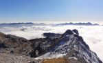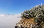 Po dolgem času torej spet v domače hribe in kam lepše kot v osrčje Julijcev! Ker se je obetalo lepo vreme, sva z Anjo preživela kar cel vikend tam gor… Štrat v soboto zjutraj na planini Blato (1147m), kjer naju je čakala megla, ivje in mraz. Preko spečih in pomrznjenih planin pri Jezeru (1453m), Dedno polje (1560m) in Ovčarija (1660m) sva tako hodila pod oblaki, ko pa sva se od pl. Ovčarija začela vzpenjati pa se je končno prikazalo modro nebo.