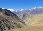 Po strmem vzponu se nam je odprl pogled na idilično dolinico, posejano z zelenimi oazami, kjer rastejo male vasice, vse naokoli pa se rjava pustinja dviga proti zasneženim vršacem, ki stražijo obzorje pod modrim nebom… Vrha Annapurne I se s celotne poti sploh ne vidi, je pa zato cel kup nič manj impresivnih 6- in 7-tisočakov.