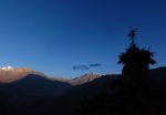 Prav nad Jharkotom ni nobenega hribčka, je pa zato že iz tam lep razgled. Tako sem šel pred zajtrkom na sprehod po vasici in na vrh do manjšega templja, pozdravil nekaj domačinov, ki so se ravno odpravljali po prvih dnevnih opravilih. Poln vtisov še enega lepega jutra sem šel nazaj na zajtrk in malo pred osmo smo se spet odpravili na pot.