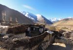 S prelaza smo se nato spustili navzdol in že sredi dneva smo bili na cilju – v majhni vasici Tingri na 4300m, kjer smo se nastanili v Snowland hotelu. Male sobice s po dvema posteljama in malo mizico so bile sicer brez oken ampak tudi brez izolacije, tako da je bilo notri le malo manj mrzlo kot zunaj. Na WC je bilo bolje kar za zid kot pa v tisto sobico z luknjo v tleh, kopalnice seveda ni bilo. Edini bolj prijeten prostor je bila kuhinja/jedilnica, kjer je bila na sredini peč, vse naokoli pa mize, kjer smo se posedli. Vsake toliko so v peč stresli malo kurjave (torej posušene jakove dreke), ampak vsaj vroč jasminov čaj je bil povsod v Tibetu vedno pri roki, brez da bi sploh prosil.