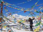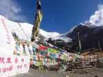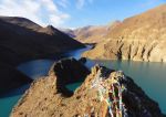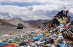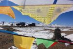 Najprej čez prelaz Simu la (4330m), kjer smo se ustavili nad akumulacijskim jezerom neverjetno modre barve – v sredi so se še videli ostanki tibetanske vasice, ki so jo Kitajci žrtvovali v imenu razvoja. Tiste molilne zastavice, ki visijo vsepovsod in res lepo popestrijo barve so postale že rahlo nadležne – polno jih leži po tleh kot navadne umazane cunje, da se stalno spotikaš, pa res so povsod!