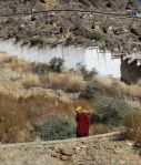Tako smo torej šibali nazaj v hladni Nyalam in se na hitro okrepčali s toplim čajem in omleto. Potem pa v jeepe in po cesti naprej v neznano. Kmalu za Nyalamom se dolina malo razširi, z njo pa tudi občutek prostranosti pokrajine. Kmalu smo prišli do male tipično tibetanske vasice, pod katero stoji majhen samostan zgrajen okoli jame v kateri je nekoč meditiral en najbolj znanih budističnih mislecev Milarepa. Tam nam je naš (zelo pobožen) vodič Jigmi prvič dal slutiti, da je budizem vse prej kot enostaven, tako da si niti približno nisem zapomnil vseh imen in pomenov pa različnih ločin in voditeljev o katerih je govoril.