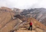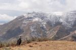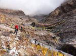 Ponoči je sicer zapadlo par cm snega, tako da je bilo prav lepo pobeljeno, ampak vrhovi so bili še vedno v oblakih in nisva vedela, če se bo zjasnilo. Šla sva od samostana navzgor, kmalu zgubila pot (seveda, v tistem labirintu molilnih zastavic!!) in šla kar malo po svoje prečno po pobočju. Višje sva prišla do nekega zapuščenega samostana, kjer pa naju je kar prestrašil očitno edini prebivalec – nek pes, ki je že od daleč lajal. Že prej sva se odločila, da zaradi oblakov ne bova šla višje in sva se potem rajši tudi izognila samostanu ter se usmerila po lepem grebenčku, kjer sva računala sestopiti. Pes nama k sreči ni sledil, sva pa kmalu prišla do domovanja jastrebov. Malo nesigurna sva šla naprej in k sreči so tudi oni odleteli, midva pa sva se sprehodila po razglednem grebenu in na koncu sestopila na drugo stran do samostana Sera.