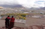 Potala stoji na gričku sredi Lhase, tako da je z vrha tudi lep razgled na mesto, ki pa ni prav nič posebnega – z izjemo ozadja. Ko smo obdelali Potalo, smo se še zadnjič sprehodili po mestu, nakupili še zadnje malenkosti ob poti, ob 12h pa nas je pred hotelom že čakal bus – in z njim naš šofer počasnela izpred dveh dni! J