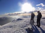 Kakorkoli, nadaljujemo do planine Koren in navzgor do vrha Kompotele (1989m). Na vrhu smo poplačani s prečudovitim razgledom na celotne Kamniške in vse do Julijcev daleč na zahodu. Snega tudi tu ni veliko, ampak dovolj za zimsko vzdušje, marsikje pa tudi precej ledeno. No, ko smo prišli nazaj dol, je bilo že prav pomladno vroče in mokro… Lepo izkoriščeno dopoldne.