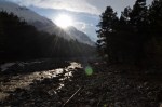 Vmes smo šli na sprehod do malo večjega mesteca Terskol, da smo oddali kartice na pošto. Prav lep sprehod po gozdu, ob reki, le vsake toliko so motile kakšne smeti, kontejner ali pa kar občasen napol zgrajen hotel sredi gozda – Rusi namreč očitno ne znajo graditi majhnih hiš! V Terskolu je bilo bolj dolgčas, zato smo šli kar nazaj v našo gostilno v Chegetu – tokrat za spremembo na goveji šašlik! Zvečer nas je že standardna peterica zašla plesat k Ruslanu, kar je bilo prav tako nepozabno – prav neresnična scena, da o klienteli sploh ne govorim! Super.