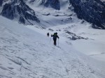 Ta dan je šlo še toliko bolj počasi, ker še nismo bili aklimatizirani. Pobočje je res položno in zdi se, da kar hodiš in hodiš pa tiste skale proti katerim si se namenil niso nič kaj bližje… Za cilj smo si zadali vrh skal nekje na višini 4800m, ki predstavljajo orientacijsko točko Pastuckhov rocks. Pri teh skalah se naklonina malo poveča, pot naprej pa še malo višje zavije levo in preči proti sedlu. Za ta dan je bil to kar dober podvig, malo smo posedeli na vrhu skal, potem pa odsmučali nazaj – prav super je bilo!
