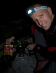 Na vrhu sva se malo razgledala in si ogledala kaj vse naju čaka naslednji dan, potem pa je bilo treba začeti iskati primerno mesto za nočitev, saj se je že mračilo. Ker sva hotela zjutraj pozdraviti sonce, se nisva hotela preveč spustiti. Po grebenu sva prišla do Jezerskega prevala (1945m) in nekaj metrov nižje sva našla lepo izravnavo na mehki travci, kjer sva se utaborila. Zraven na skalah pa sva našla mizo, stole, pult – skratka kot nalašč za večerjo pod zvezdami!