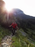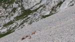 Potem pa gremo na pot! Najprej sva se precej spustila proti Mišeljski dolini do planine pod Mišelj vrhom (1645m), kjer sva se za kakšnih 100m priključila markirani poti proti Mišeljskemu prevalu, ampak že kmalu zavila v desno na udobno stezico, ki se lepo vzpenja po strmem pobočju Koštrunovca. Sploh zjutraj je bilo kar živahno, povsod ogromno gamsov, za svizce sva bila pa verjetno preglasna in sva šele kasneje videla enega bolj od daleč. Sicer pa, sodeč po vseh luknjah in tonah izkopanega materiala, imajo pod temi hribi pravo podzemno velemesto!?!