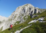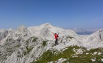 Na vrhu Koštrunovca (2102m) sva se malo odpočila in se po premisleku odločila, da ne nadaljujeva na Mišelj vrh po izpostavljenem grebenu. Zato sva se spet malo spustila in prečno pod steno prišla do najlažjega prehoda na greben. Strmo ampak enostavno. K sreči je ves dan prijetno pihalo, saj je sonce že kar zgodaj začelo greti.