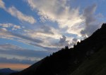 S sončnim zahodom ni bilo nič, saj je bilo na severu povsem črno in so temni oblaki kmalu pogoltnili sonce. Je bilo pa prav zato na nebu zelo pestro in so pisani oblaki ustvarjali razne umetniške podobe… Proti severu (na varni oddaljenosti) sva opazovala nevihto, kjer je kar dobro treskalo – ko tako opazuješ moč narave, se lahko samo čudiš in občuduješ! No, Mihatu je v kakšnih 500 poizkusih le uspelo ujeti eno strelo na fotko, tako da je bilo vredno! 😉