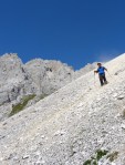 Potem pa naprej skozi čedalje bolj redek gozd, pod steno Šplevte in vse do sedla med Šplevto in Dovškim križem. Zvečer je začelo tako nesramno pihati, da naju je občasno kar prestavljalo! Sva kmalu pozabila na neznosno vročino v dolini – hkrati pa sva tudi hitro opustila misel o spanju na prostem kar na vrhu Šplevte…