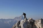 Tokrat se nama ni mudilo niti pri lovljenju sončnega zahoda niti vzhoda, saj sva bila obdana z divjimi stenami, ki omogočajo pogled samo proti jugu. Kljub vsemu sva zjutraj vstala pred soncem in se pred bivakom naužila lepot ob prebujanju dneva, ko je sonce ožarilo vrhove nad nama. Potem pa greva na pot. Čez Grlo (2390m) in po tistem krušljivem pobočju na Veliki Oltar, ki je z 2621m najvišji v Martuljški skupini, čeprav iz doline ne zgleda tako, ker je nekoliko umaknjen zadaj. Poleg tega se prav preko Oltarja navezuje skupina Škrlatice, ki ga prekaša za skoraj 120m. Ne glede na to pa je Oltar izvrsten razglednik, saj se nahajamo v osrčju Martuljške skupine, le ozračje je bilo tokrat pač poletno motno, tako da pogledi niso segali zelo daleč.