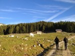 Spustili smo se naravnost navzdol do Korošice, ki jo je ravno takrat že požrla megla, ki je prilezla iz doline. Zato smo šli hitro naprej, spet malo navzgor na sonce in mimo Vodotočnika po sveže markirani poti spet nazaj do Podvežaka.