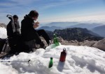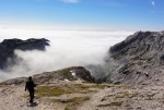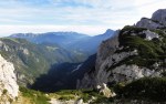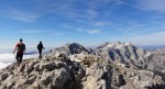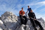 Zjutraj smo zavili še do Moličke planine, kjer stoji stara Kocbekova koča in tik nad njo majhna kapelica sv. Cirila in Metoda na višini 1747m. Od tam strmo navzgor po stari Kocbekovi poti na Malo Ojstrico (2019m), potem pa po lepem grebenu vse do lepotice Ojstrice (2350m). Razgledi izvrstni, jutranji veter se je kmalu polegel, tako da je bilo kar poletno vroče.