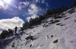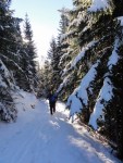 Izhodišče pri Radušniku, potem pa skozi lep smrekov gozd, mimo Koče na Loki (1534m) in po direktni na Veliko Raduho (2062m). Od koče navzgor tudi tu še ni bilo shojeno, tako da smo imeli spet na sporedu gaženje – snega sicer ni bilo nič preveč, kakih 20, zgoraj mogoče 30cm.