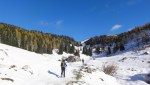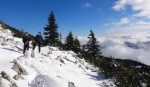 Oblaki so se nam hitro bližali in kmalu so se začeli poditi tudi okoli nas, ampak smo imeli večinoma še sonce, zato smo nazaj grede naredili ovinek – po grebenu proti zahodu, dol do planine Arta (1586m) in spet nazaj do izhodišča. Spodaj v gozdu se je medtem že toliko ogrelo, da smo že malo čofotali po tisti snežno-blatni brozgi, tako da očitno bo za nekaj časa konec zimske idile…