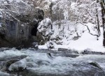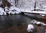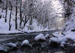 Na poti nazaj sem se ustavil še v bližnjem Rakovem Škocjanu – še en čudovit konček naše male deželice! Še dobro, da sem imel v avtu tudi gojzerje in gamaše, saj sem gazil tudi do kolen! Šel sem cel krog po poti skozi speči gozd in ob precej vodnati reki, ki si je živahno utirala pot ukleščena med snegom in ledom. Lepo tudi brez širnih alpskih razgledov 😉