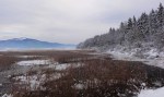 Seveda sem bil prezgoden, da bi šel že domov, zato sem šel še do Cerkniškega jezera. Jezero je že večji del zamrznjeno, na njem je treniral en samoten drsalec, vse naokoli pa zimska idila. Škoda le, da ni bilo več sonca in so tudi fotke manj zanimive…