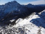 Že v Zajzeri je bilo vzdušje bolj zimsko kot v prejšnjih dneh v dolinah. Do koče Grego (1389m) je ledeno, potem pa gre prav lepo naprej čez sedlo Rudni vrh (1398m) in navzgor mimo bivaka Gemona (1890m) na Poldašnjo špico (Jof di Miezegnot, 2087m). V zgornjem delu je precej spihano in gre brez težav.