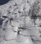 Popoldne pa se je bilo treba pogreti in smo šli kar po cesti do vrha Vršiča (1737m). Na soncu smo se v tisti zimski idili hitro ogreli. Na vrhu smo naredili še en snežni prerez, ki je pokazal nevarno kložo, zato bodo tudi Mojstrovke verjetno še nekaj časa samevale. Smučali smo večidel po cesti, tako da nič posebnega, ampak vseeno lep popoldanski sprehod. Zvečer pa nas je čakalo še predavanje Toneta Škarje in večerni program…