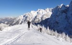 V nedeljo smo se zbudili v še eno mrzlo zimsko jutro, zato nismo preveč hiteli, poleg tega pa smo se podali v Krnico, kamor že tako cel dan ne posije sonce… Pa nas ni preveč zeblo in smo hitro prišli do pod Kriške stene. Zaključili smo kot večina na levi pod steno na začetku krnice V kotu na cca 1900m. Razmere pa uživaške – 20cm pršiča na trdi podlagi vse do dol! Skratka lep zimski vikend in upamo na še čim več takšnih!