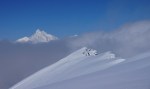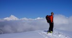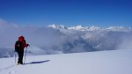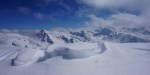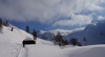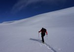 Sadnighaus je super izhodišče s pestro izbiro ciljev, čakalo pa naju je kakih 15-20cm novega pršiča na trdi podlagi. Poleg naju je bilo tam samo še nekaj Avstrijcev, ampak ker sva bila prva sva pač midva utirala gaz preko lepih pobočij Asten Böden in čez manj izrazit vrh Kluidhöhe (2579m), potem pa po grebenu na Hilmersberg (2670m).