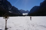 Sedem se nas je v sredo po službi odpravilo v Krmo. Na začetku doline kar nismo verjeli poročilu, da se prismuča do avta – a že kmalu se pojavi sneg, in cesta je prevozna le do Kovinarske koče (870m). Od tam je kar dolga po ravnem dnu doline preden se končno ne začne vzpon. Snega je vedno več, sonce greje, razgledi čedalje lepši…