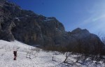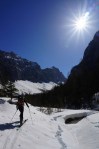 Višje v Travni dolini smo končno zamenjali smer hoje in se usmerili proti severu skozi Kravjo dolino. Pot je res dolga, ampak je pa lepo v teh širnih sneženih prostranstvih in dolinah, kjer se sliši samo zavijanje psov pod nogami, vse naokoli pa mir in navdihujoči razgledi.