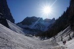 Pomlad je prišla v polnem zamahu – in čas je za visokogorje! Res smo se večji del zime držali nižjih in varnejših tur in sem že kar pogrešal občutek pravih gora! Zaradi vročine sem se zato z veseljem odzval vabilu na malo drugačno turo – take so pač vedno najboljše 🙂