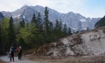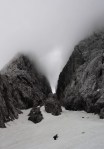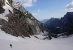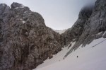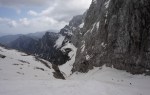 No, lastnik očitno ni bil pokopan skupaj s kolesom, zato smo šli naprej po dolini navzgor. Strmina narašča, mogočne stene se ožajo in vodijo proti temačnemu Jalovčevemu ozebniku. Mi pa smo pred njim zavili desno v zgornje nadstropje na širna pobočja pod Kotovim sedlom (2134m). Zaključili smo na grebenu na okoli 2220m tako kot večina iz množice današnjih obiskovalcev.