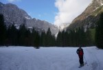 V planici pri skakalnicah (960m) je že pomlad in je treba kakih 15min peš do snega. Od Doma v Tamarju (1108m) naprej pa je snega zaenkrat še dovolj in se tudi po gozdu še brez težav prismuča po špuri. Malo višje smo srečali smučarja, ki se je spotaknil ob balanco in je ravno izkopaval kolo (!) izpod snega. Hmmm, vsekakor en bolj čudnih dogodkov na turi…
