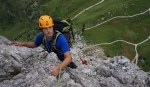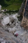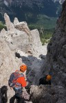 Za konec smo splezali še Torre Quarta Alta 2240m, »via normale« IV, 80m. Tu je bilo sicer nekaj navez že pred nami, ampak je šlo vseeno lepo in brez težav. Za prvi dan torej kar dovolj za nas začetnike!