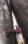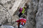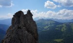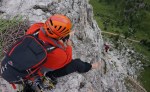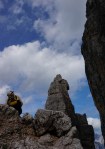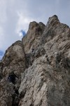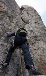 Naslednji dan sva se z Mihatom priključila Moniki in Blaži, ki sta v navezi peljala še Tadejo. Izbrala sta nam res lepo turo, ki preči dva stolpa – prvega, manjšega po čudovitem razu, z vrha smo se po vrvi spustili v škrbino in sestopili še kakih 100m do vstopa v naslednjo smer. V smeri smo bili prvi in smo lahko uživali v super plezariji.