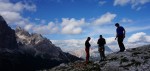 Ker je večina prišla šele v četrtek, smo bili prvi dan prepuščeni sami sebi. Glede na to, da sva z Mihatom to poletje pridno trenirala, tako v plezališčih kot v hribih, sva bila dovolj suverena, da smo se šli kar takoj preizkusit v steno! Odločitev seveda ni bila lahka, na koncu smo si izbrali stolpe Cinque Torri, kjer je ogromno krajših smeri pa tudi plezališče, skratka nekaj bomo že našli zase.