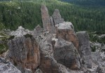 Tik nad prelazom Falzarego sva plezala smer »Via del Buco«, III-IV, 240m. Ena (počasna) naveza je bila že pred nama, kmalu pa se je za nami nabrala že cela kolona! Precej je bilo čakanja, višje pa smer postane manj strma in tam smo plezali kar tri naveze nekako vzporedno, ena preko druge… Kar neprijetno in tudi nevarno, ampak smo hitro izplezali, brez težav. Tudi to je bila po svoje zanimiva izkušnja.