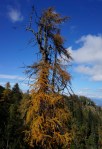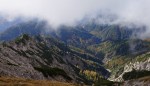 Skozi barvit jesenski gozd sem prišel na bolj skalnat greben Kurjekov. Tam se z vsakim metrom odpirajo novi razgledi, pot pa vodi po vzhodni strani, saj je greben preveč poraščen. No, tudi na poti se je treba občasno prebiti skozi kak pas ruševja. Na koncu pa naravnost navzgor in pod Gubnim sem stopil na markirano pot. Sledi razgledno prečenje pod Dovško Malo Kepo in po grebenu na vrh Kepe (2143m). Že pod vrhom so me prehiteli oblaki, a kmalu se je izkazalo, da se bodo le posamezni oblaki preganjali tu čez in sonce je prevladovalo večino časa!