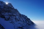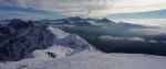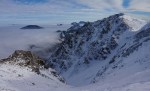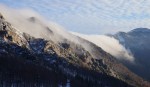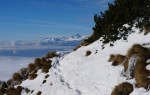 Gor sem šel po bližnjici čez Šentanski plaz. Snega je zelo malo in skoraj hodiš bolj po kamnih kot po snegu, a je šlo vseeno kar lepo. Potem pa po razglednem grebenu preko Velikega vrha (2060m) in naprej proti zahodu. Južna pobočja so skoraj kopna, jaz pa sem zavil spet nazaj na pobeljena severna pobočja, kjer pot preči ves čas dovolj visoko, da sem se držal nad pasom oblakov. Sčasoma je bilo le treba navzdol do Zelenice – v sivo in mrzlo meglo… Lep dan v lepih koncih.