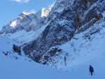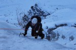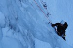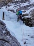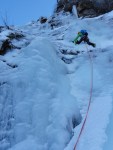 Nismo bili preveč zgodnji, kar je bilo dobro, saj smo bili potem sami, naveza pred nami pa je zgazila sestopno pot. Samo plezanje je bilo zanimivo, z Deanom sva bila še malo negotova, ampak zmogla sva! Predstavljam si, da bi bila zadeva lahko še dosti bolj ugodna, če bi bilo več ledu, na trenutke ga je namreč bolj za silo, na vrhu pa je še skoraj cel potoček.