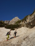 Midva sva odsmučala ob 9:30. Lahko bi tudi prej, majsko sonce ima pač svojo moč. Prav luštno je šlo in to precej daleč. Spodaj je en ozek prehod, ravno za dolžino smuči, potem pa skoraj čisto do gozda. Tam je sledila hitra stilska preobrazba in še pol urce peš do avta. V Mojstrani smo se ravno ujeli še z Duletom in Ladotom, ki sta prismučala za Cmirom in si privoščili zasluženo. Zelo odlično!
