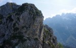 Nato pa zelo strmo navzgor med rušjem na Veliki Kumleh (1680m). Res nisem ljubitelj ruševja, pa še vedno zavestno izbiram take kosmate ture… No, z vrha se odpre lep razgled vse naokoli in tudi na greben, ki sledi. Sestop globoko v škrbino pomeni začetek zahtevnejšega dela prečenja. Skalnato in prepadno, a v resnici se najdejo presenetljivo lepi prehodi – ko kasneje gledaš nazaj zgleda skoraj nemogoče, da bi tam dol sploh prišel, kaj šele tako enostavno (enostavno je tu sicer zelo relativen pojem, tura je vsekakor resna).