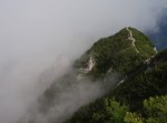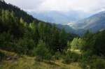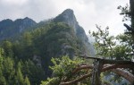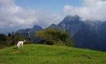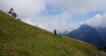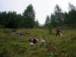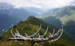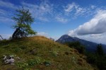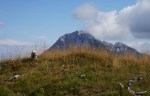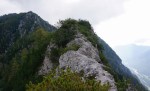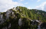 Naslednji vrh je (še en!) Vršič (1497m), pred nama pa čedalje bolj divji svet. A stezica (z lepo poseko med rušjem) naju je spretno vodila mimo vseh težav. Mislim, da bi se dalo tudi naprej ves čas po grebenu; to naj bo za naslednjič. Midva pa sva sledila stezi prečno v gozd do idilične jase in naravnost po travah do grebena. Ker je bil blizu, sva skočila še na Visoki (Kurji) vrh (1828m), še en čudovit razglednik.