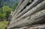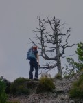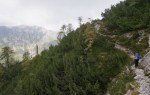 Iz vasi proti vzhodu, mimo Vavčarja in “po domače” navzgor do prvega vrha v grebenu, Vršiča (1212m). Kljub tej skromni višini, naju je že takoj čakalo presenečenje: neobičajen pogled nad Zgornjesavsko dolino, pred nama lušten greben s prijetnim gozdom – in pod nogami majhna stezica (le kdo hodi tu gori?). Po nekaj lagodne hoje spet novo presenečenje: strm skalnat stolp (mislim, da gre za vrh z imenom Rez, 1412m), ki sva se mu, sledeč stezici, izognila. A ker imava rada grebene, sva se ob prvi priliki povzpela nazaj. Postalo je že kar pestro, na trenutke tudi izpostavljeno. Strme grape, prepadne in krušljive stene, napredovanje v takem svetu pa je obema v užitek.