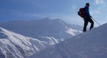 Prednost Švice je pač ta, da se lahko marsikam zapelješ. Na primer z vlakom na prelaz Oberalp na 2044 m, kjer je seveda bil sneg. In kljub oblačnim izgledom tudi sonce! V hudem pomanjkanju izbire v danih razmerah sva izbrala klasiko nad prelazom – Pazzolastock (2740 m). Običajno menda zelo obljudena tura, tokrat skorajda nikogar kljub nepričakovano lepim razgledom. Žal je bila smuka po pričakovanjih – slaba! Spihano, ledeno. Zato sva tudi zaključila tik pod vrhom in se zadovoljila z vsaj lepo turo, če že ne tudi uživaškim spustom.