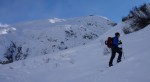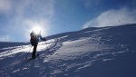 Kakorkoli, sprva po ravno dovolj zasneženi cesti, nato pa po širokem grebenu do manj izrazitega vrha, ki pa je prav tako izredno popularen. A tudi tokrat sva srečala le par ljudi. Ne vem, če sem omenil, napovedi navkljub se je spet lepo zjasnilo in je bil vzpon prav lep. Smuka malo boljša, je manjkalo še nekaj centimetrov, sploh v spodnjem delu, kjer sva ravno še uspela prismučati do izhodišča.