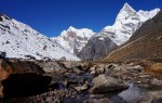 Tako smo ostali le še trije. Kaj hočemo, gremo čim prej na pot. Eno dobro stran sestopa sem vendarle našel: ker smo hodili v obratni smeri, smo nadoknadili zamujene razglede, ki so bili gor grede že zakriti zaradi popoldanske oblačnosti. Posebno prvi dan na poti iz Khareja do Thangnaka je bila hoja pravi užitek! Končno nam je bilo prijetno toplo, vse okoli nas pa so se dvigali divji beli vršaci, sploh Kyashar je pokazal še en nov obraz.
